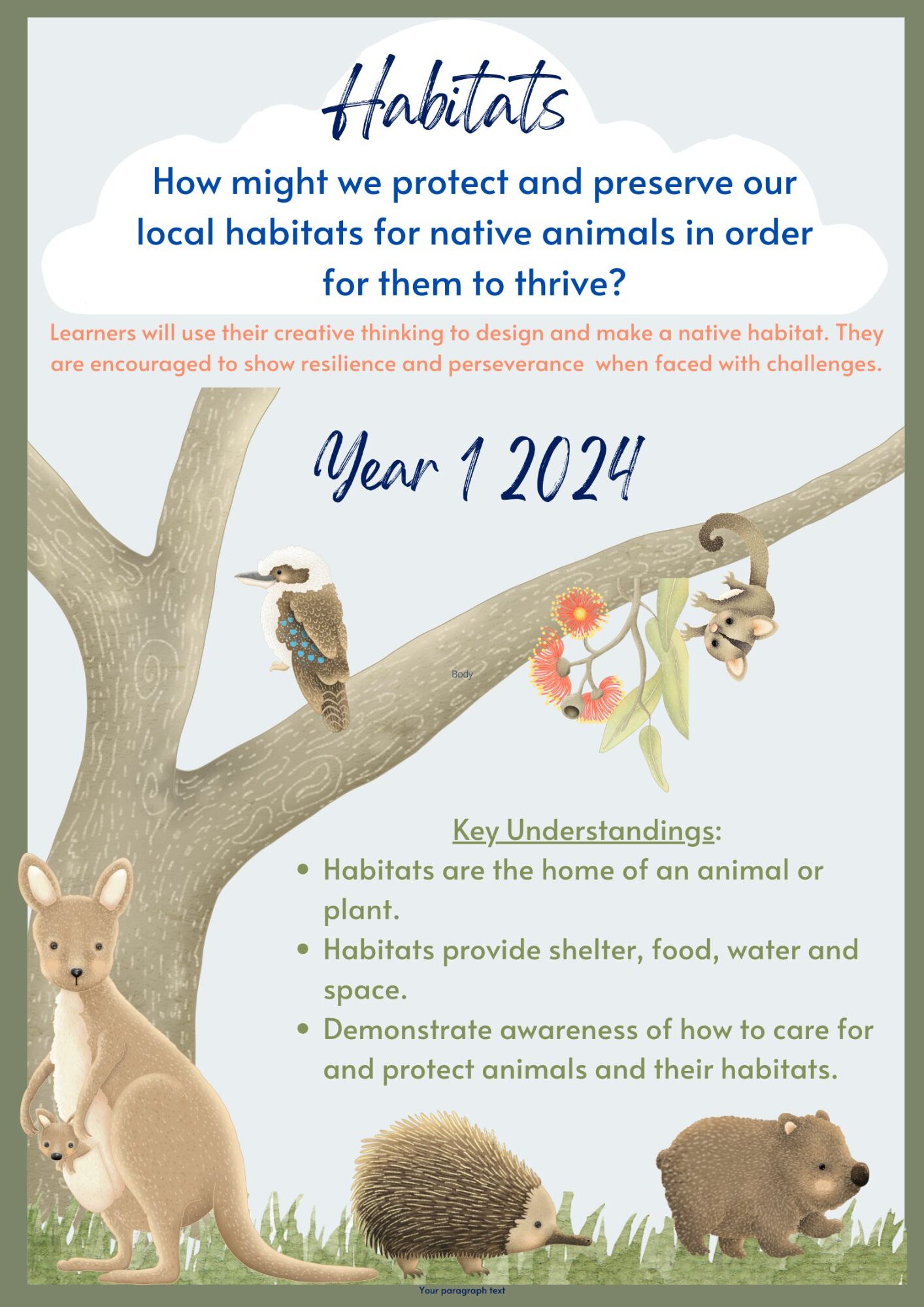 - Year 1: How might we ensure that an animal has everything it needs to thrive in its habitat?