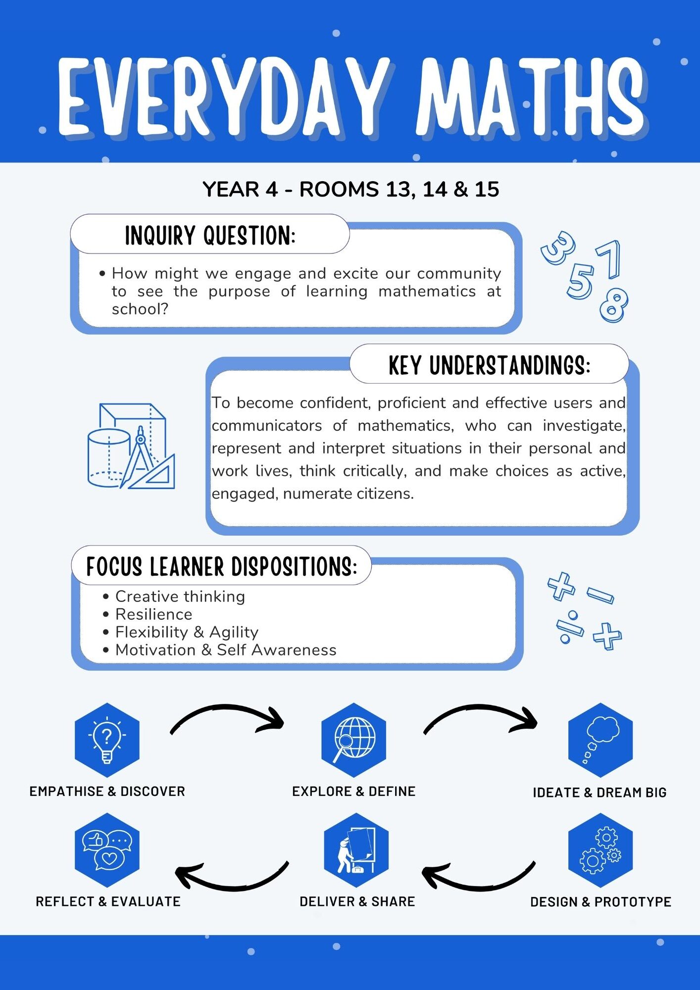 From Foundation to Year 6, our NPS Project Based Learning (PBL) framework supports students to explore real-world problems with purpose, creativity, and compassion. Using a flexible cycle of inquiry, students are empowered to take ownership of their learning as they move through six key stages: Empathise & Discover, Explore & Define, Ideate & Dream Big, Design & Prototype, Deliver & Share, and Reflect & Evaluate.